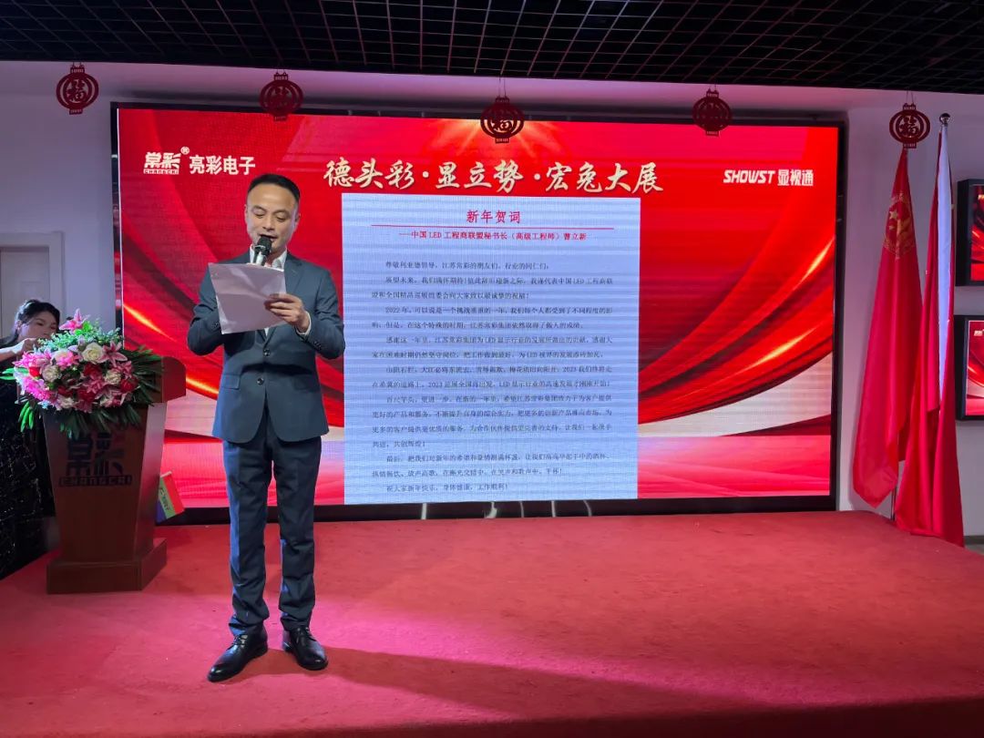 ▲曹立新先生 中國LED工程商聯(lián)盟秘書長(高級(jí)工程師) 曹秘書長雖未親臨年會(huì)現(xiàn)場,他給我們帶來了新年賀詞: 展望未來,我們滿懷期待!值此辭舊迎新之際,我謹(jǐn)代表中國LED工程商聯(lián)盟和全國精品巡展組委會(huì)向大家致以最誠摯的祝福! 在新的一年里,希望江蘇亮彩致力于為客戶提供更好的產(chǎn)品和服務(wù),不斷提升自身的綜合實(shí)力,把更多的創(chuàng)新產(chǎn)品推向市場,為更多的客戶提供更優(yōu)質(zhì)的服務(wù),為合作伙伴提供更完善的支持,讓我們一起攜手共進(jìn),共創(chuàng)輝煌! 酒興高至,此時(shí)情意正濃,讓我們?cè)谶@載歌載笑的氛圍中,正式拉開今日宴會(huì)的序幕。 一等獎(jiǎng)得主 年會(huì)怎么能少了大家最最最期待的抽獎(jiǎng)環(huán)節(jié)呢? 我們的獎(jiǎng)項(xiàng)設(shè)置如下: 新年好運(yùn)來,把好運(yùn)延續(xù),希望2023年大家都能“兔”來運(yùn)轉(zhuǎn),鴻運(yùn)當(dāng)頭。 相聚的時(shí)光雖然短暫,但這份感動(dòng)和美好,卻將永遠(yuǎn)留存在我們心中。就讓我們相約在未來的前行路上,一路攀高,彼此照耀。也讓我們相約明年再會(huì)。 不負(fù)過去,不懼未來。 以奮斗之心,迎接2023!